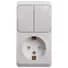 ЭТЮД Блок открытой установки Розетка с заземлением со шторками + Выключатель двухклавишный белый Systeme Electric