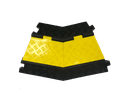 Формовое изделие из резины. Сверху - откидывающаяся крышка из эластичного желтого пластика. На концах предусмотрены соединители типа "пазл". Необходимая длина кабель-канала набирается путем соединения нужного количества элементов. Используется для перенаправления кабельных путей от основного элемента кабель-канала.