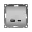 Розетка 2-м USB СП Афина тип А+С 5В 1х2.4А 2х4А механизм серебро Universal А0059-S