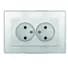 Розетка двухместная UNIVersal серия Афина б/з, с/у, 16А, 220В, серебро (еврослот), механизм Универсал