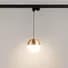 Светильник подвесной для треков/шин 4 провода. Мощность 11 Вт св. поток 960 лм 80 лм/Вт теплый 3000 K CRI>90 угол 170° напряжение питания 230 В. Золотой корпус из алюминия материал плафона стекло степень защиты IP20. Размер: диаметр 150 мм длина подвеса 1500 мм. Монтаж на трек 3-фазный. Драйвер 28-42 В 250 мА пульсация <1%.