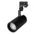 Светильник подвесной для треков/шин 4 провода для продуктов. Мощность 30 Вт св. поток 2402 лм 80 лм/Вт специальный холодный 7500 K для рыбы и морепродуктов изменяемый угол 20-60° напряжение питания 230 В. Черный корпус из алюминия материал линзы PC/PMMA степень защиты IP20. Размер: диаметр 100 мм высота 220 мм. Монтаж на трек 3-фазный. Драйвер 33-44 В 750 мА пульсация <1%.